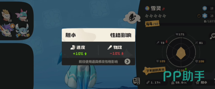 性格天赋选择上面,比较推荐只要是能加速速度的就可以了,比如说“胆小”,不需要太关注其他方面的属性,因为本身也不靠雪灵去打伤害,最好是能减少攻击力的性格,这样几乎就没负面影响了。天分方面也是优先增加速度资质的,其它的推荐生命和防御。