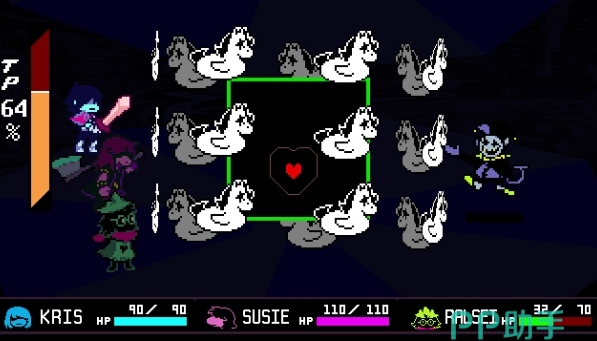 Ralsei是游戏中和平主义的象征,他始终坚持以非暴力的方式解决问题。无论是面对敌人还是队友,他都表现出极大的耐心和友善。在战斗中,更倾向于使用安抚等技能,通过让敌人入睡来宽恕对方,而不是直接攻击。Ralsei的魔法能力是他在团队中不可或缺的重要原因,掌握了一系列强大的治疗和辅助技能,能够为队友提供关键的支持。治疗祈祷可以为队友回复HP,而双重治则能在特定战斗中为全体成员提供大量生命值恢复。此外,Ralsei的毛茸茸防护罩技能在与Spamton NEO的战斗中发挥了重要作用,能够有效保护队友免受伤害。
