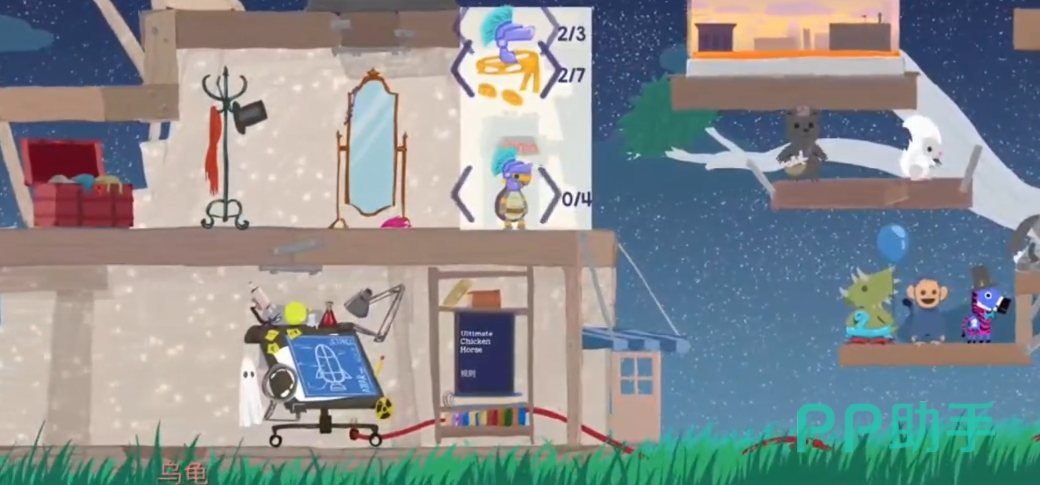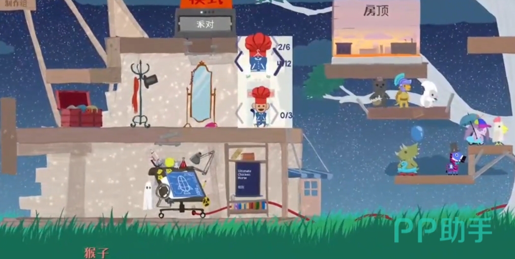 为什么选择角色会有点重要性,这和游戏的玩法有点关联。游戏分为多种模式,每个模式都是需要联机的,在选择好模式和角色之后就能进入游戏,进入游戏场景后可以从道具中选择其中一个道具来设定场景的闯关条件,每位玩家累计第一名到达终点3次获胜。选择合适的角色来闯关可能会增加获胜的可能性。