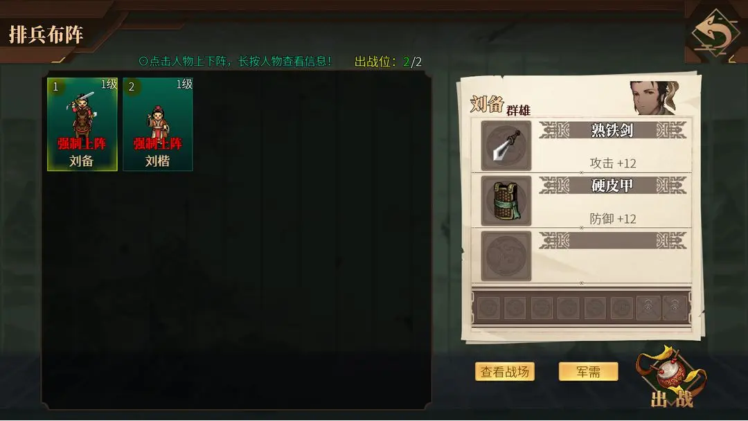 在阵容上,推荐使用刘备、张飞等。刘备策略以及统帅属性较为突出,是队伍中的指挥型角色。它技能兼顾输出与控制,技能能对敌方造成高额损伤并限制敌方行动,为己方提供输出环境。