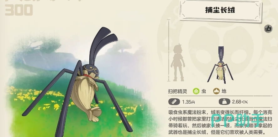 4、捕尘长绒,这是编号300的精灵。想要获得这个精灵的话,通过完成魔法学院的“智慧树苗”任务即可。