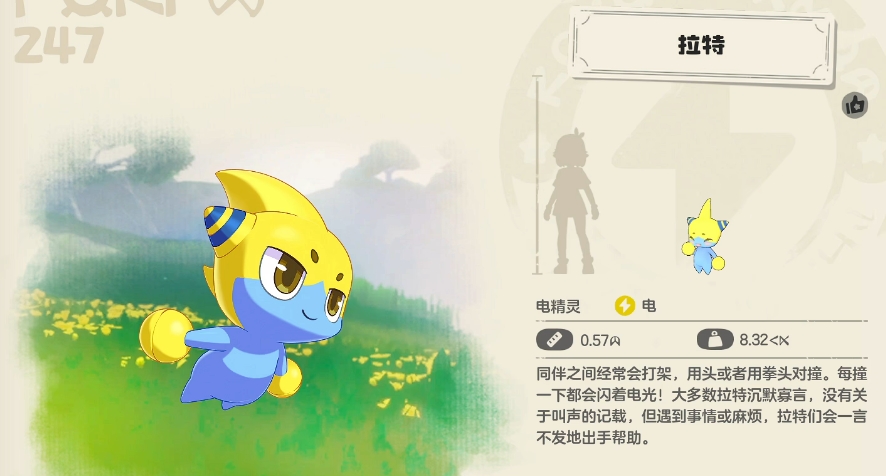 1、拉特,这是编号为247的电系精灵,它会在“监管所的魔力之源”附近出现。