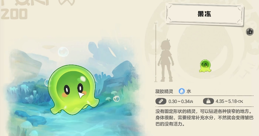 3、果冻,这是编号为200的精灵,不过这个精灵会有3个形态,分别是椰浆布丁、熔岩布丁、抹茶布丁。果冻会在“望风半岛的魔力之源”附近出现。