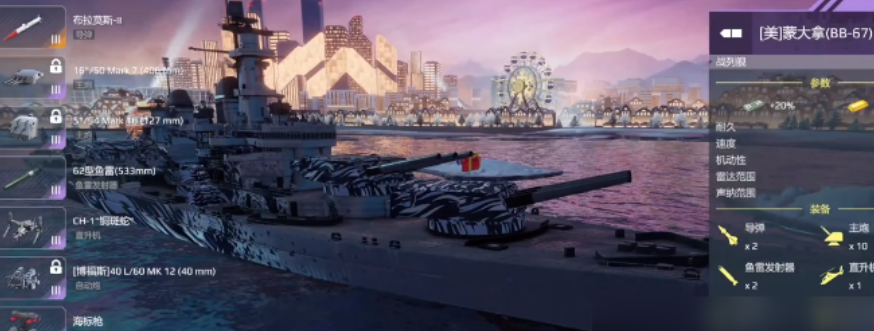 蒙大拿是一艘既保证了强大的火力输出,又有着不错生存能力的战舰,它的主炮和副炮若是一同发射的话,伤害能够到达23万以上,出色的爆发力在加上超高的视野,让它的火力变得更强的强悍,出色的机动性让它变得更加灵敏。