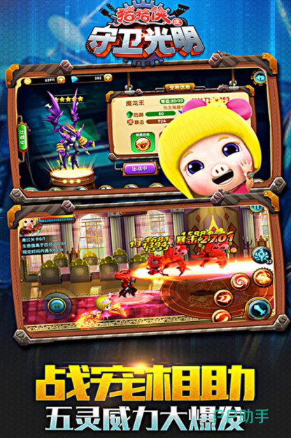 本游戏根据热门动画片猪猪侠改编而来,让玩家化身具有超能力的猪猪侠与恶势力进行战斗。游戏采用横版战斗模式,融合原著中的精美猪猪侠形象,打造了童话般的彩色猪猪世界,玩家可以在小呆呆或者猪猪侠等角色里任选形象与技能,利用独特的天赋和技巧,融合大量科技感十足的装备,在每个关卡中消灭邪恶的敌人,超强的机甲系统可以一键完成变身,瞬间完成战斗局势的逆转。