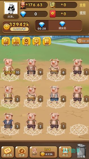 这款游戏采用合成的方式让玩家体验养猪大佬的快乐,玩家放置玩法轻松突破各种难度等级。游戏提供了大量不同级别的小猪元素供玩家养殖,两个同样的小猪可以合成为更高等级的小猪,通过这种不断养殖与合成的方式,最终成为拥有大量财富的养猪大亨。玩家养猪需要掌握好饲料的配比,利用科学的管理方法,才能提高小猪的生长能力,不断的扩展猪圈饲养更多小猪。