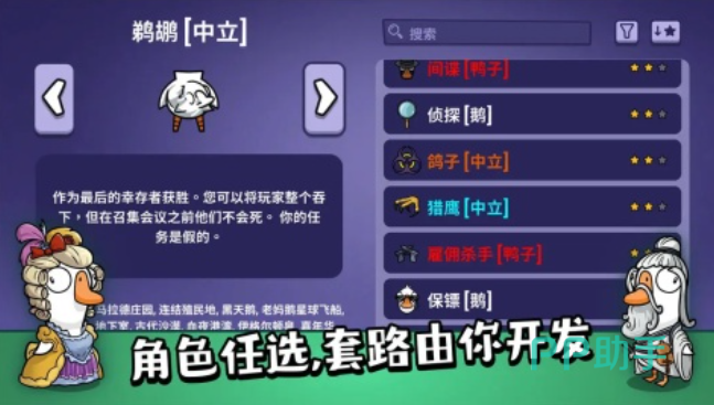 《鹅鸭杀》同样是一款多人在线社交类游戏,游戏分为两个阵营,分别是鹅阵营和鸭子阵营。其中鹅阵营代表好人,鸭子阵营代表坏人。而这款游戏的主要玩法就是好人阵营驱逐坏人阵营,而在这过程中坏人阵营还需要搞破坏。除了经典的鹅鸭杀玩法外,还涵盖了躲猫猫和炸弹等多种小游戏可以方便大家自由玩耍。