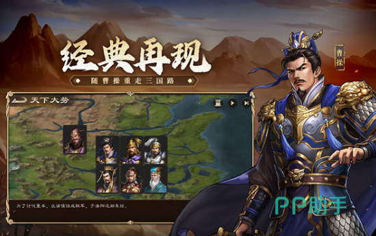 写实的画风,让玩家直接穿越到了乱世三国时期,在这里将会感受众多三国的战役,比如官渡之战以及群雄逐鹿等等,其中还融入了众多优秀的三国名将,比如有曹操以及关羽等人,都有着各自的优势和战斗实力,玩家需要合理排兵布阵,还要和更多乱世枭雄斗智斗勇。