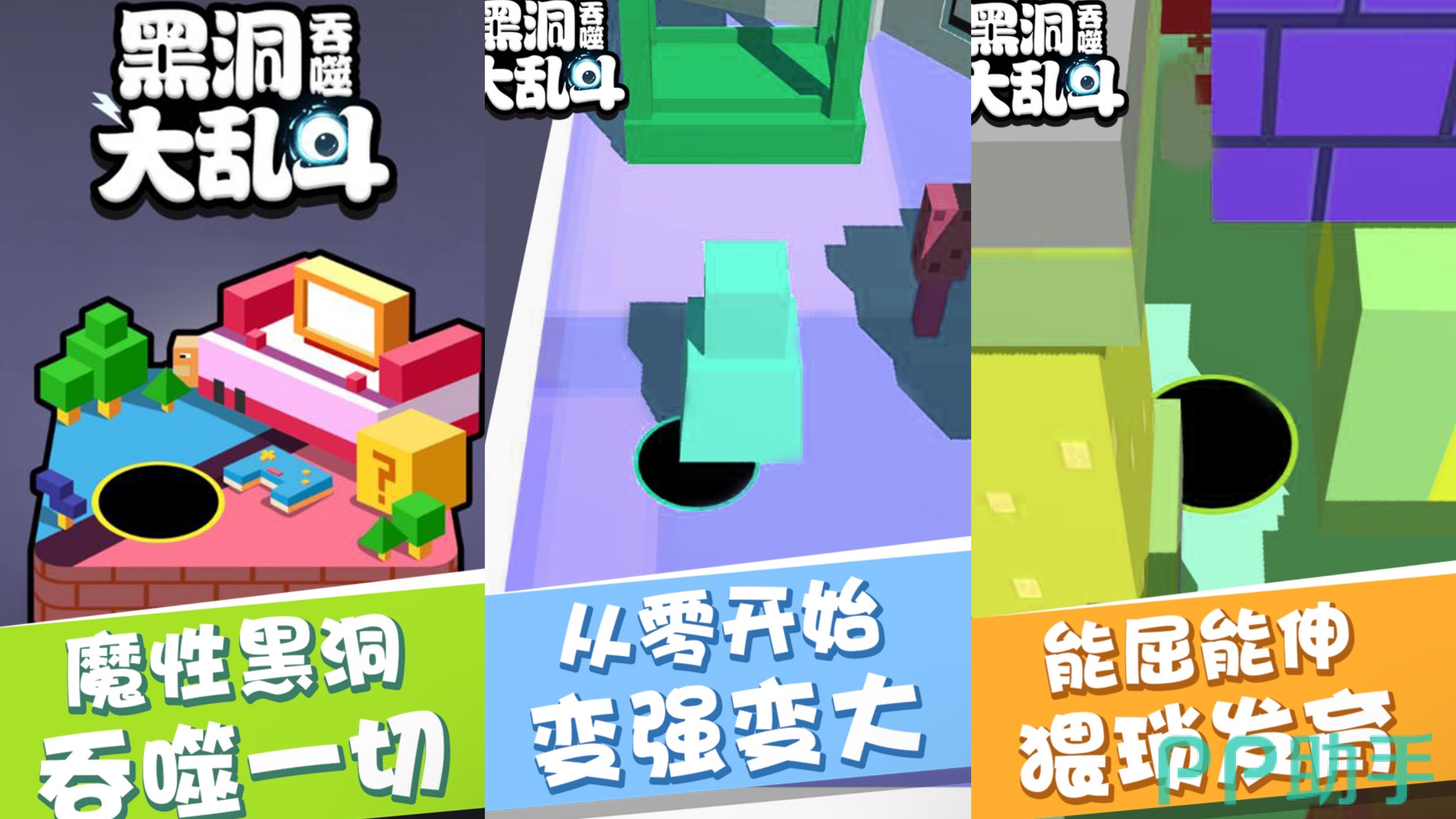 这是一款休闲闯关类手游,在游戏中玩家要控制屏幕中的黑洞去进行闯关。每一关都会不同的地图,地图上的建筑物品都不相同,玩家需要 完成每一关的吞噬任务,闯关胜利之后就会获得金币奖励,玩家可以用金币去兑换更多的黑洞皮肤。游戏为玩家提供了30多种黑洞皮肤和100多种不同的闯关场景,每一款皮肤都非常的可爱有趣,感兴趣的小伙伴们赶快下载体验吧!