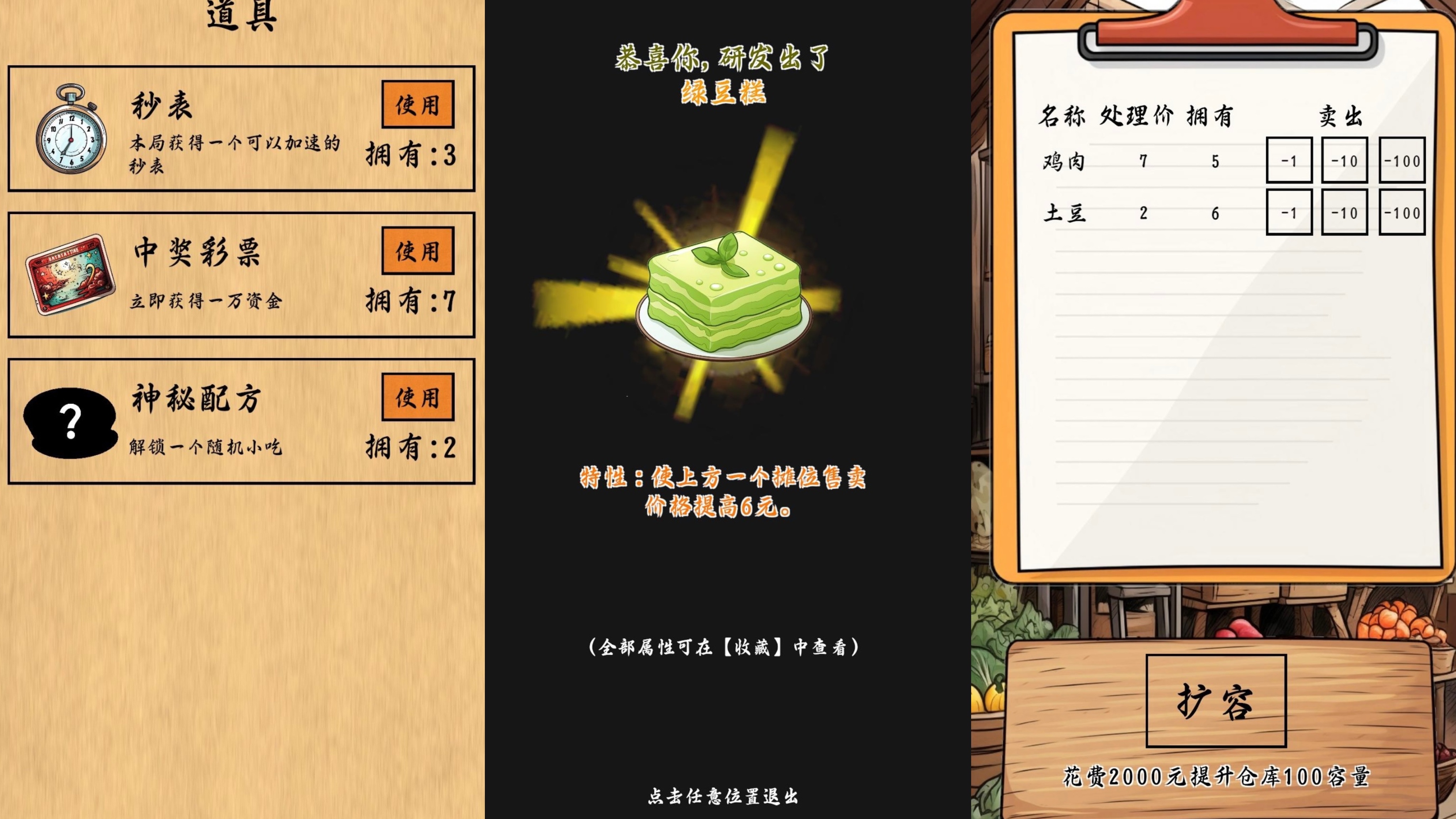 这是一款以摆摊为主题的烹饪游戏,游戏中包含了中华各地的特色小吃,你需要用你的厨艺将它们一一烹饪出来。摆摊第一步,选择正确的摆摊地点,比如人多的小区和街道。第二步就是循序渐进,利用自己的厨艺去完成各种各种的挑战和任务,获取更多的商业机会。第三步就是和顾客合作,制定合适的价格,让顾客满意才能有回头客。最后就是要根据季节和市场趋势来制作合理的摆摊计划,这样才能获得更多的经济利益!