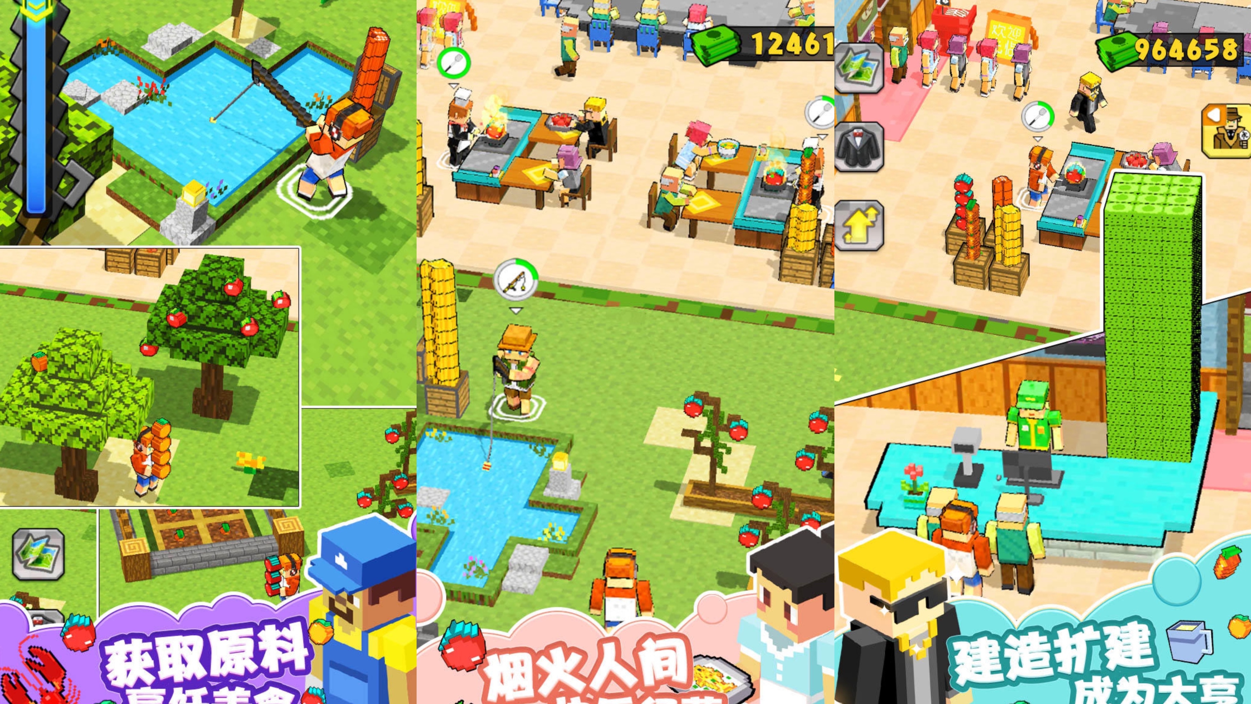 这是一款像素方块风格的餐厅经营模拟手游,从一家小小的餐馆逐渐成为餐厅大亨,你所需要做的就是满足顾客们的味蕾,打造良好口碑,让餐厅人气越来越高!为了更好的提高餐厅的出餐效率,你需要招聘更多的店员来和你一起工作,安排他们去清理餐桌收银等。当然,你还需要负责采购食材,以保证顾客们每天都可以吃到新鲜的食材。游戏的玩法非常简单,只需要点击屏幕就可以完成任何的游戏操作,享受烹饪的乐趣!