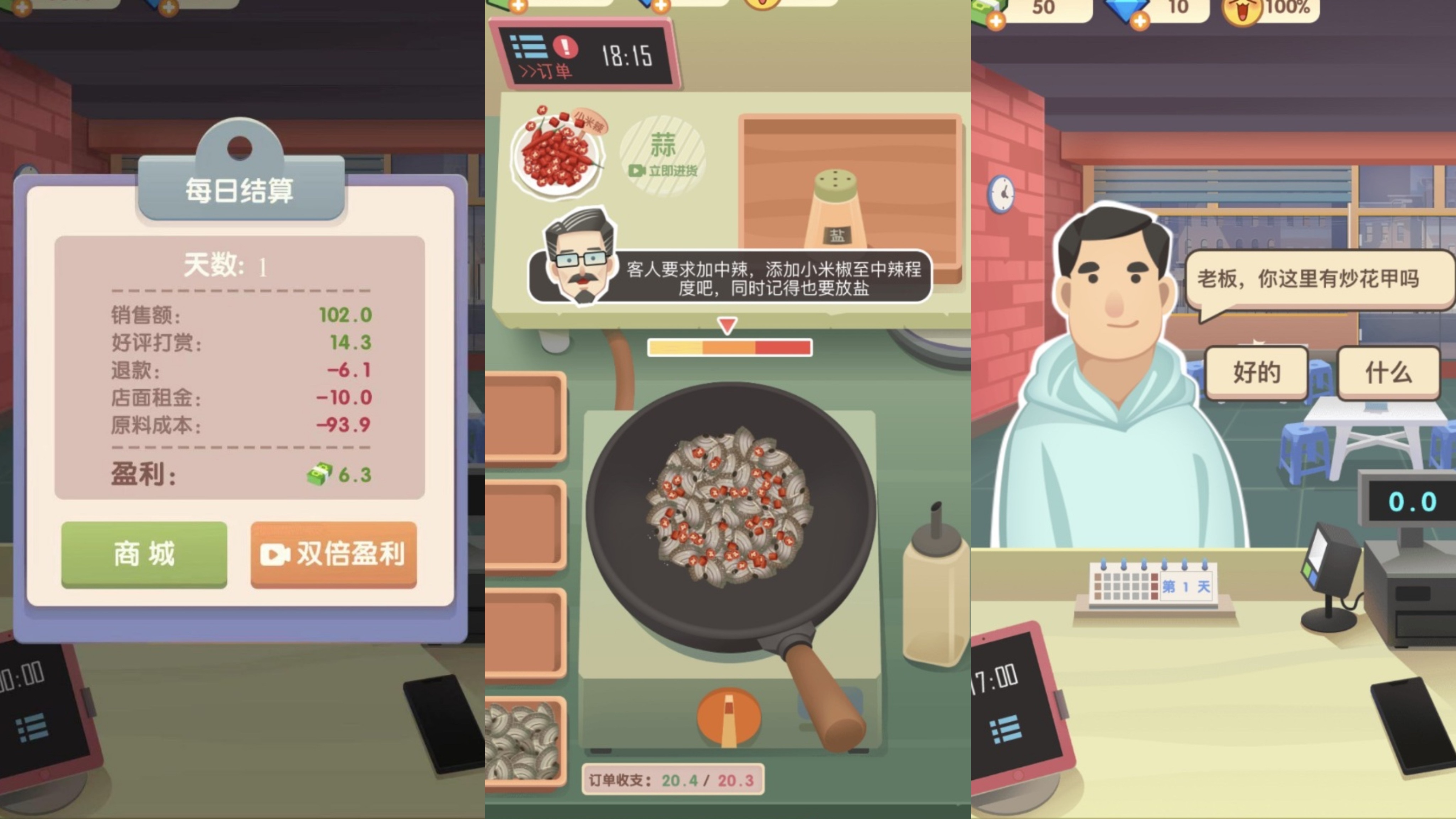 这是一款非常好玩的烹饪游戏!在游戏中玩家将会成为一家大排档的老板,用自己的厨艺去征服每个食客的味蕾!游戏虽然画风偏卡通简洁,但是却有颠锅爆炒等真实的烹饪体验!除了烹饪体验,游戏还有老板的日常生活,比如买菜,备菜,清洗厨具等。另外,游戏还具备不同的经营模式,玩家可以自由选择,去体验不同的烹饪手法,在烹饪中获得更多的食谱和奖励,打造更豪华的店面!