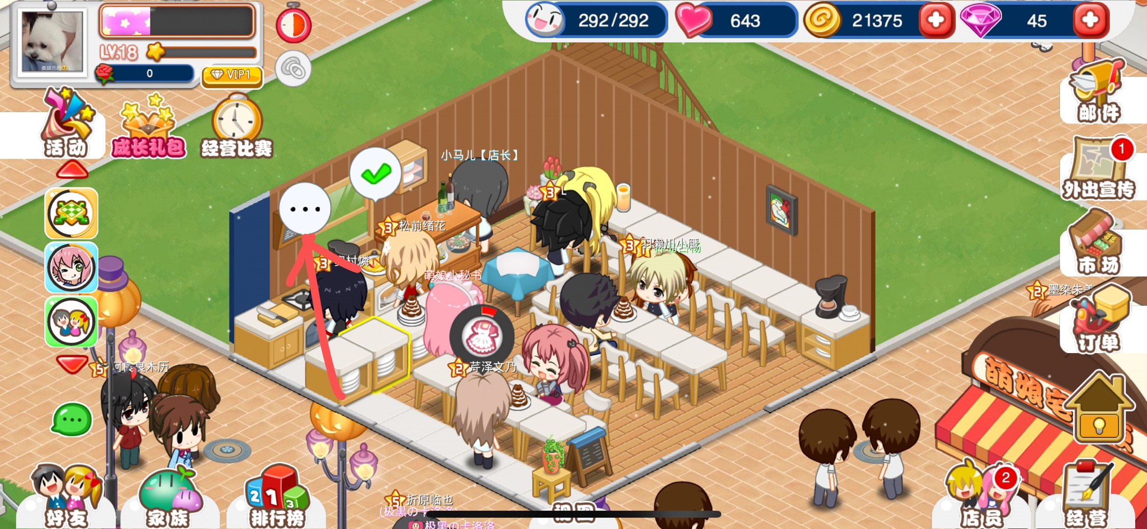 第四步:如果制作的时间比较充裕,就通过正常的途径来操作即可。回到游戏主界面,点击灶台边上厨师店员头顶的三个点图标。