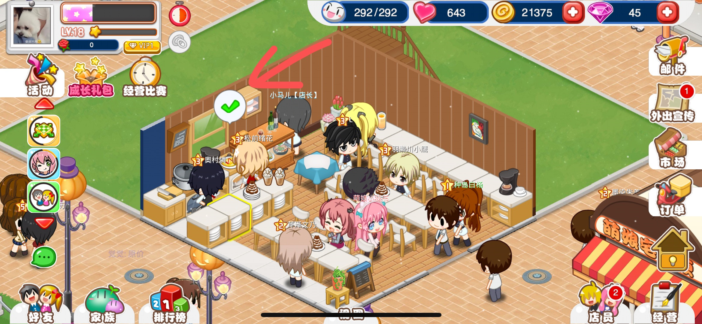第五步:等级越高的食物制作时间越长,当食物制作完成之后厨师的头顶会显色一个绿色图标,只需要点击这个图标即可收取制作好的食物。