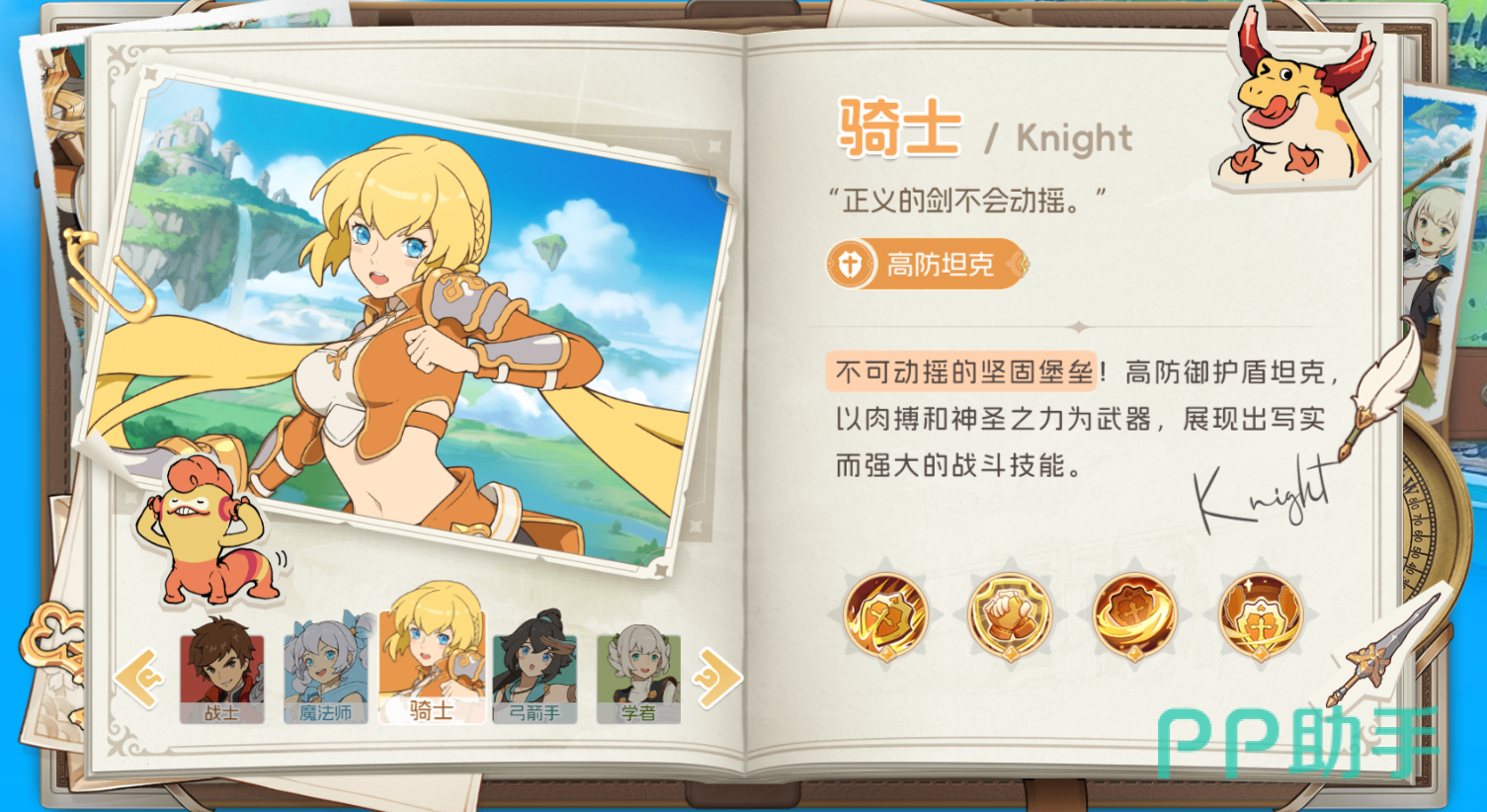 当然了,作为游戏攻略,小编自然会在这篇文章中先对各类职业做一个简单的介绍,帮助大家建立初步概念。首先为大家介绍的是坦克大类的职业:骑士和战士两个职业共同担任起坦克的职责。其中“骑士”以高防御和群体嘲讽能力见长,在实际的战斗中能有效吸引敌人的火力,然后为队友创造出一个安全又稳定的输出环境,是团队坚实的前排壁垒;“战士”则是具备着高血量和自愈的强力能力。因此该职业可以凭借高血量和自我回复这两个定级续航的能力,保证在战斗中能够吸收伤害的同时,也具备一定输出,可作为队伍中的副坦或输出补充。