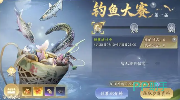 接着是钓鱼大赛,时间从4.30到5.6,准备参与的可以前往NPC冯渔处,提交指定数量和种类的鱼进行报名,直接获取报名奖励萤惑晶,在活动期间每日都会有全新鱼点,大家可以追踪与鱼点钓鱼,最后优胜的玩家可以得到钓星龟坐骑等奖励。