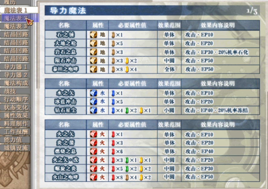 在空之轨迹FC中,战技魔法并不是通过角色自身学习获得的,而是依赖回路的组合形成。每个魔法需要特定数量的元素属性值(火、水、地、风、时、空、幻)才能解锁,因此空之轨迹fc魔法合成表也是很多人想学习某种魔法时要查询的,不然只能自己去摸索,下面就和大家分享空之轨迹fc战技魔法配方一览。