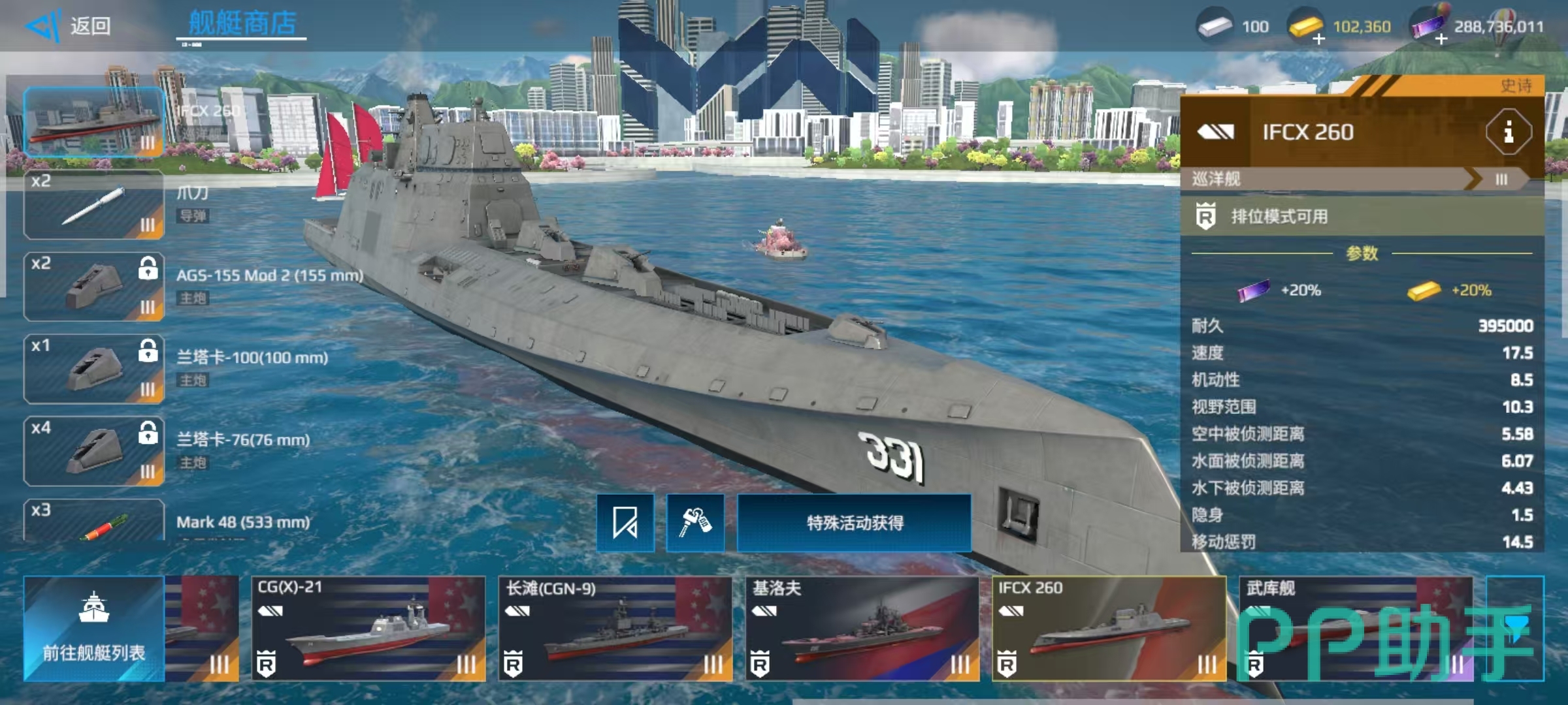 今天小编要来给大家介绍的,也是现代战舰中鼎鼎大名的一艘巡洋舰IFCX260,这艘在隐身方面有着出色表现的船只深受大家喜爱,接下来就详细分析一下现代战舰IFCX260怎么样。在三级房中,这艘巡洋舰出场几率也比较高,自身在武器方面也比较有优势,一起往下看吧。