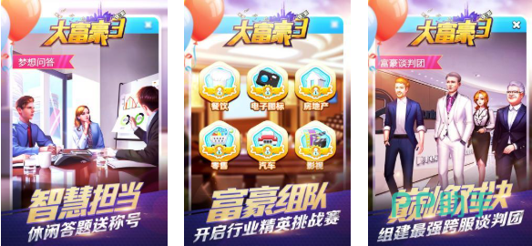大富豪3是拥有顶级商战玩法的模拟经营类游戏,化身富豪的你可以收购各种公司和资产,利用灵活的头脑思维参与商战会获得更多利润,利用高智商搭建商业王国的玩法生动有趣,公司管理+人才养成等有趣玩法代入感不错,还加入了商战方面的巅峰对决玩法具备很强自由度,梦想成为大富翁的朋友来试试这款商战神作吧。