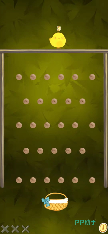 这是一款十分考验反应力的联机游戏,在游戏中玩家分为两个阵营,分别是攻击方和防守方,位于攻击方的人员可以操控小鸡随机释放鸡蛋,而鸡蛋在经过地图中木桩的碰撞,改变活动轨迹后就会掉落到下方,而防守方的任务就是用篮子,接住随机掉落的鸡蛋,如果能够成功守住不让第一弹掉落,那么防守方就胜利,反之攻击方获得胜利。