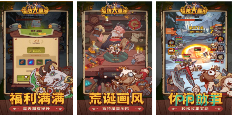 本作是拥有放置操作且画风搞笑的塔防作品,也有着怪诞的美术UI展现出不同的视觉效果,休闲性不错的挂机塔防理念更受懒人喜欢,魔性音画表现再结合创新玩法不会让大家失望,这款搞笑风格的塔防游戏节奏较快且难度不高,实时更新的各类关卡跟有趣的模式耐玩性更强,这款画面荒诞搞笑的防御神作你也来玩吧。