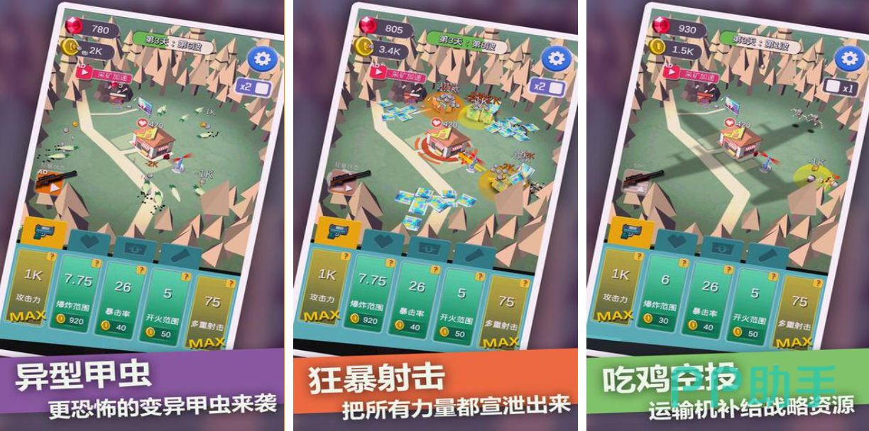 这是拥有2.5D特殊视角的末日类竖屏塔防作品,无数僵尸和变异昆虫会把你的营地团团包围,你也要利用塔防机制将这些怪物击退,保卫建筑物、合成炮塔的设定很有新鲜感,肉鸽塔防的元素跟特殊视角带来超爽感觉,地图会随机掉落空投箱获得更先进的武器,这款末日主题的防御闯关佳作值得一试。