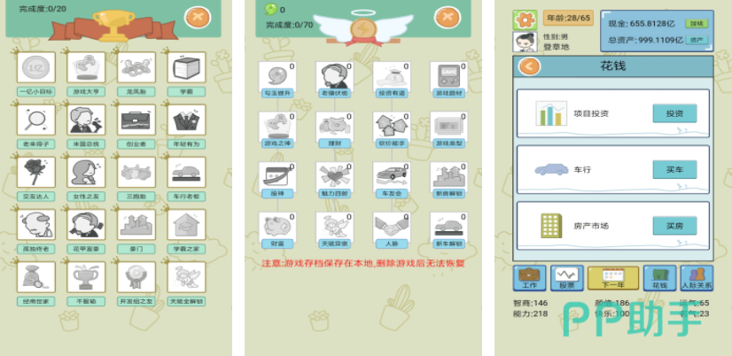 中国式人生,是一个对于玩家来说非常真实的模拟游戏,很多人都希望能拥有一个完全不同的人生,但现实改变起来是非常困难的,这时候就可以通过游戏,让自己重活一次,游戏里玩家将会从出生开始,逐步去重走自己的人生,每到一个阶段都会发生一些特定的事件,可以选择做一个学霸,也可以选择放弃学业,自行经商,游戏里每一个人生阶段的设定,都和现实生活一样,想要重启人生的可以尝试一下这个游戏。