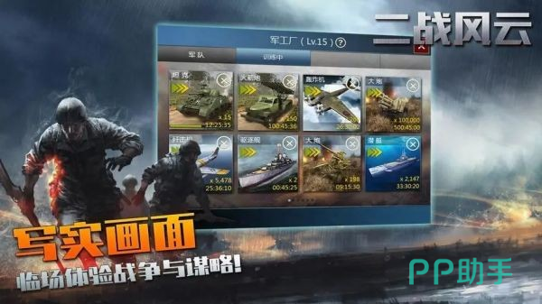 游戏核心竞技玩法以战争策略对决,以及城市管理建造为主,在二战背景之下,大家可以化身军事指挥,进行各种资源发展管理,以及军事部署等模拟。《二战风云》不仅还原了二战历史场景以及剧情事件,同时还登场了各式武器资源载具等,令大家可以身临其境的感受,战火纷飞氛围下热血对决的酣畅痛快。
