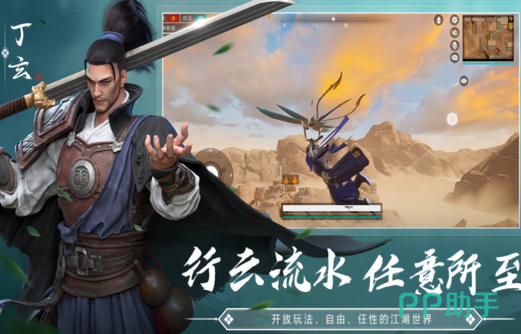 本作算是手机端首款公测的武侠风格吃鸡游戏,具备行云流水的操作和任性的战斗吃鸡理念,使用冷兵器战斗刺激的战场瞬息万变,还有一些飞镖、火铳等暗器可灵活使用,骑上骏马逃离沙尘暴的跑毒设定别出心裁,武侠风格的角色展现跟吃鸡玩法交相融合,黄沙漫天的大漠吃鸡环境也是别具一格。
