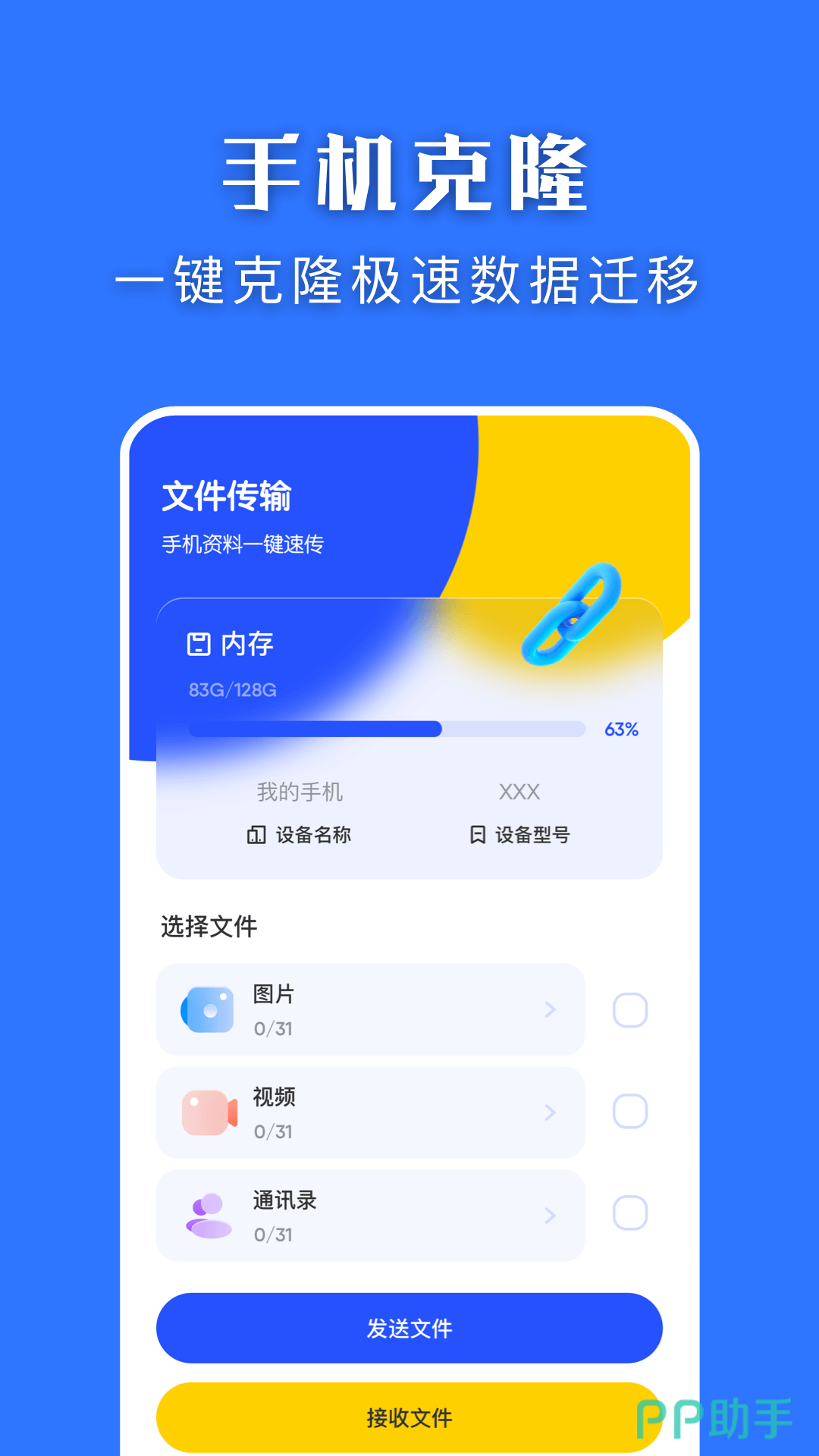 专为解决新旧手机数据迁移难题,支持通讯录、视频、照片、音频等类型文件跨机传输,操作的时候也很方便,新机开启接收数据,旧机点击发送,自动就能为用户去建立安全通道,瞬间完成资料转移。
