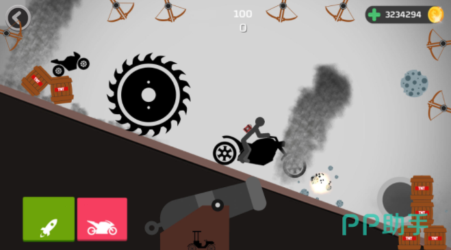 一路狂飙,是一个设定非常有趣的摩托车驾驶游戏,和传统的摩托车驾驶不同,在这个游戏里并不是平坦的赛道,并且玩家最终的目标也不是驾驶摩托车驶向终点,而是需要操控火柴人角色,在高速行驶的过程中坠落,并且在坠落之后被各种弓箭武器攻击的场景,坠落之后,对于摩托车以及火柴人产生的伤害越大,玩家能获得的分数也就越高。