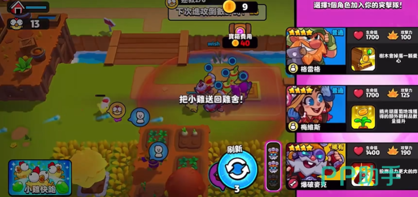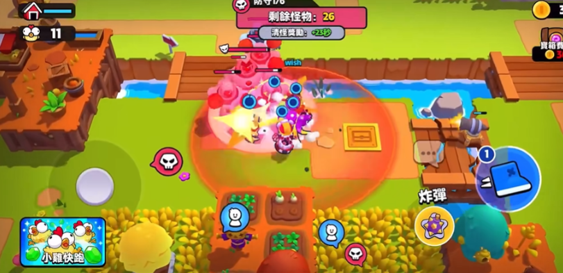 玩家在寻找小鸡的时候会碰到很多野怪,直接向鸡舍进攻,玩家要进入到防御战当中。其实在防御战中,玩家要利用技能跟武器给小鸡筑起比较坚固的防线。玩家在消灭怪物的时候速度比较快,这样就能够争取更多的时间,当然玩家也需要权衡利弊。