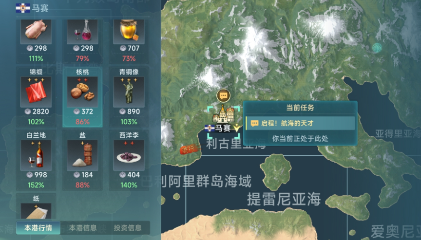 在法兰西初期阶段,可以形成比较强的贸易道具就是核桃干,而这个东西在巴伦西亚是可以获得很好收益的,但是这条航线非常地漫长,需要玩家们对于补给与士气管理进行提升,这样在航线行驶的时候可以降低很多的风险。