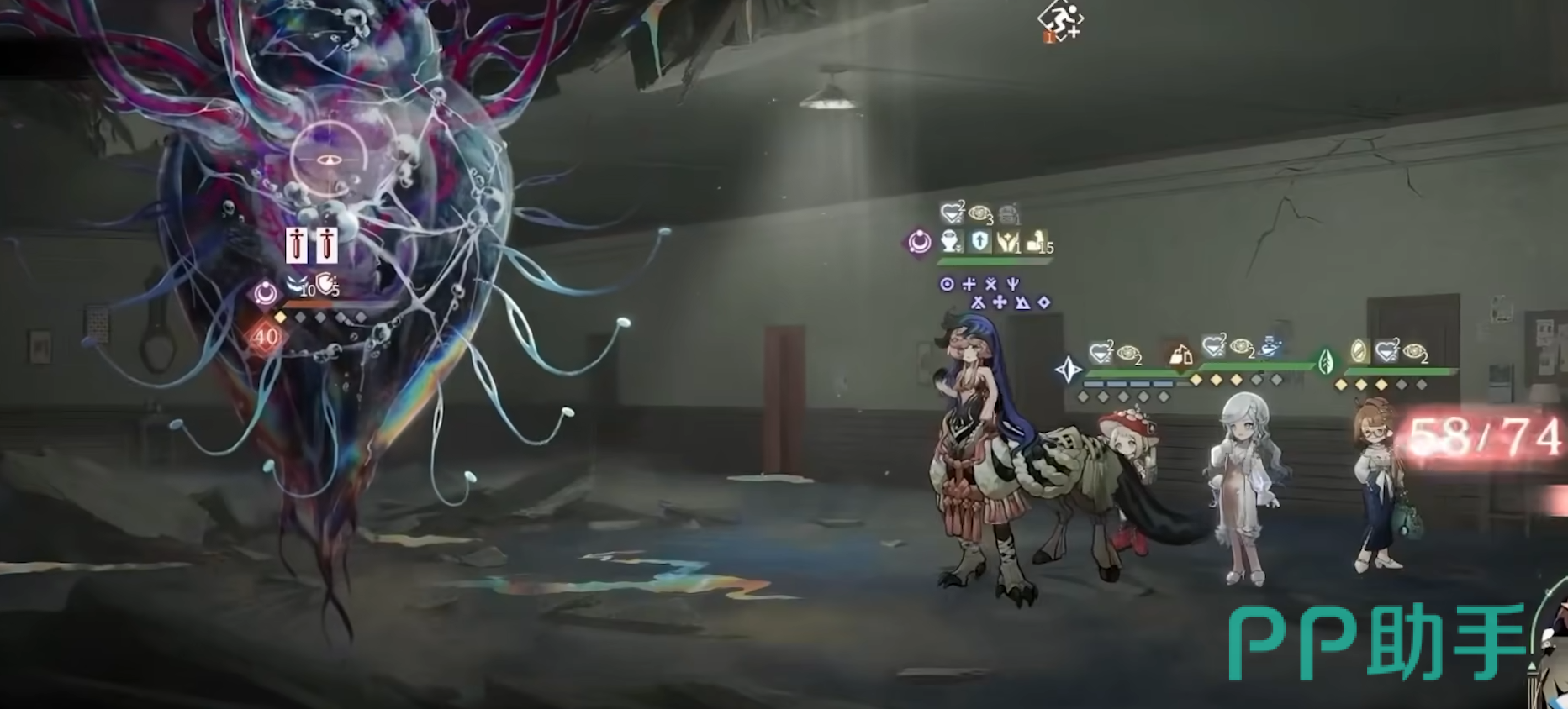 神秘术2“象牙或犄角之门”,临场应变,在对应阶数的“编织于光中”和“献身与裂隙”中选择其一释放,献身与裂隙的主要效果是单体攻击,使场上所有单位失去一定比例当前生命,并使己方全体获得“逆境1”,之后额外对敌方单位附加基于自己最大生命值的现实创伤,场上单位越多,本次伤害越高;逆境1使受创减免和创伤加成增加。