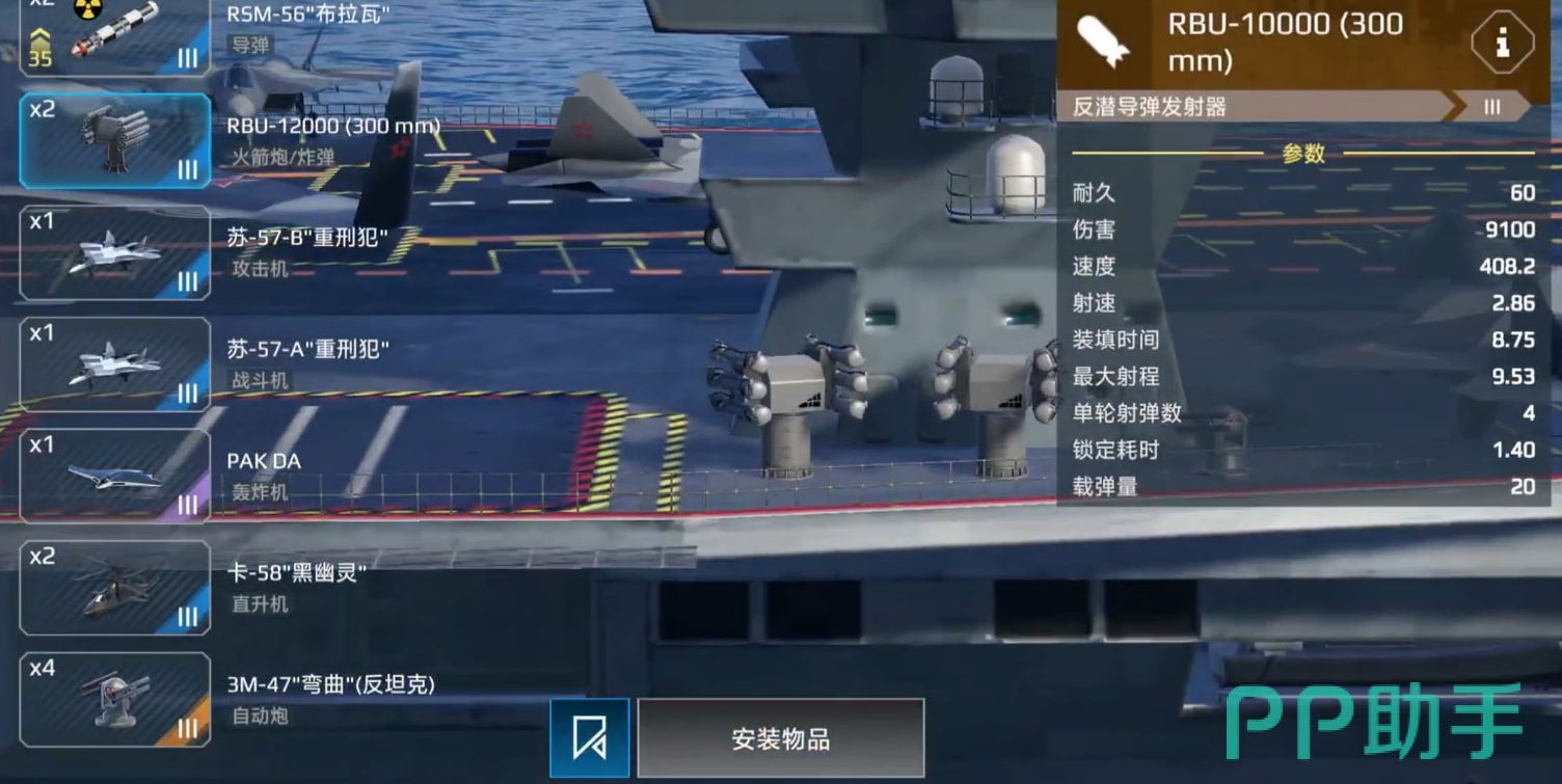 在武器的配置上,玩家们如果想把它当作参与战斗的主力舰,那么就把自己所拥有的高性能飞机都装配到它这里就好。而在导弹的选择上,除了可以选择射程远的导弹来与飞机进行协同外,也可寻装填较快的来防一手紧急情况。火箭弹则更建议装配上能反潜的,避免自己被潜艇接近时缺少还手的手段。