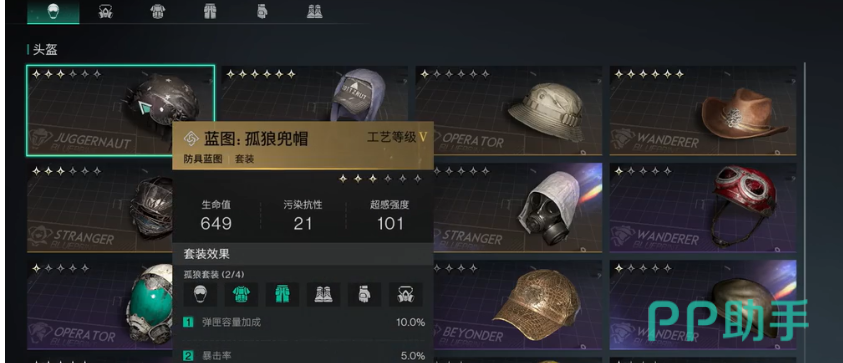 头盔最好使用防毒兜帽,这个防具有着电涌的效果,一旦触发暴击率就能提高35%,套装使用孤狼套装,其中选择一个位置带上堡垒,这样就能增加孤影层数的上限了。