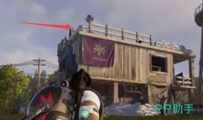 玩家直接往西面走,这时候会看到一座两层的小别墅,玩家到达2楼会发现一个武器箱,武器箱里面的武器属性是比较好的,但是玩家适不适合要根据玩家自身的情况,不过玩家倒是可以改造,另外玩家到了别墅的屋顶要看一下屏幕,如果出现了蓝色的光点,这时候玩家会发现宝石。