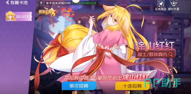 玩家要想获取这一个角色,目前主要是通过抽卡的方法,这个操作方法还是很简单的。涂山红红在游戏中会背负着重要的责任,而且力量比较强大。在战斗的过程中就会直接释放狐妖之力,而且还可以给敌人造成毁天灭地的伤害。