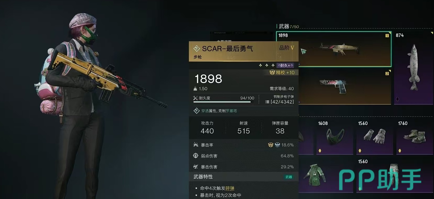 最后的勇气属于金色品质的步枪,连续命中4次后,将激活碎弹效果,触发暴击时,所需要的命中次数减少到2次。暴击触发碎弹激活次数在接下来的1秒内加1,碎弹暴击伤害提升30%。凝望深渊属于金色品质步枪,连续命中20次后,触发冰霜漩涡,命中弱点后相当于2次命中次数,可以使用愿望机收集80个蓝图碎片获得,也可以直接在愿望机购买。