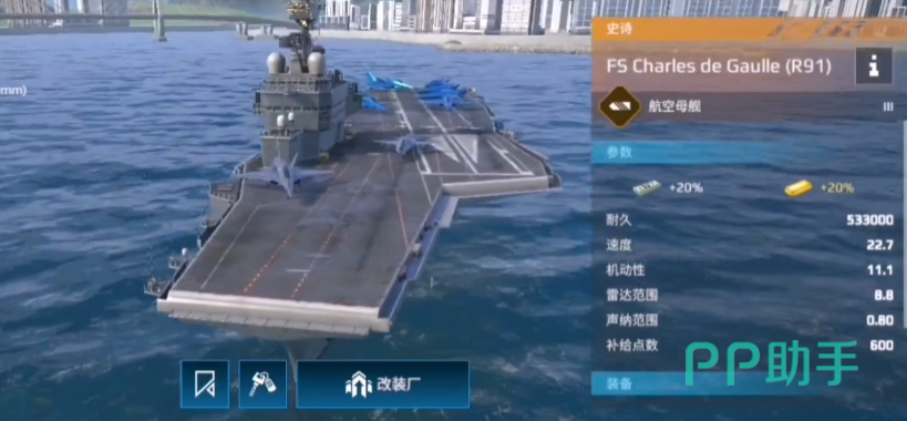 航母的主要优势在于,远程持续打击,舰载机可反复起降攻击目标,理论上输出可持续无限。制空权,对敌方航母、导弹驱逐舰和其他高威胁目标可以快速压制。地图控制与辅助能力,部分航母具备侦察、电子战干扰等能力,对整体战局影响深远。战术多变性,通过搭配不同类型舰载机与武器系统,玩家可以定制“空优型”“轰炸型”甚至“反导型”航母。
