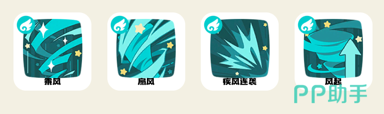 最后推荐的四大搭配技能是乘风、扇风、疾风连袭和风起,其中山峰可增加自身50的速度,对于闪避流,或者是boss攻击速度较快的关卡,可进行使用。