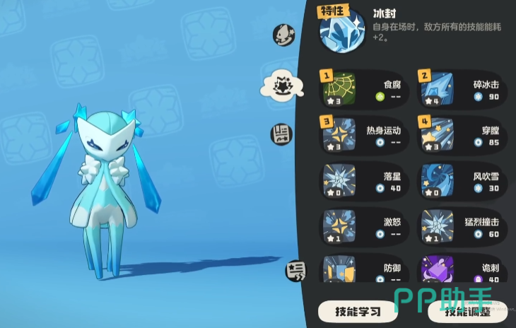 狂咬是一个恶魔系物理技能,在冰封幽魅初始时便已掌握,冰冻术是冰系魔法技能,有几率让对手陷入冰冻状态,在游戏前期的对战中,该技能既能凭借冰系魔法伤害给予对手可观打击,暴风雪是初始拥有的冰系魔法技能,作为冰封幽魅的高威力输出技能之一,它在战斗中能够对敌方造成大量伤害,极度深寒是冰系变化攻击技能,35级时可以获取,它是冰封幽魅的核心控制技能,先手优势加上高概率冻结效果,能在对战开始阶段抢占先机。