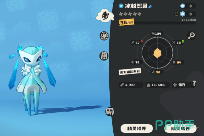 冰封幽魅的种族值总和为690,各项数值的分布对战斗定位与能力有着显著影响,精力数值为120,赋予了冰封幽魅一定的生存根基,在对战起始阶段,较高的精力值使它不至于被对手轻易击败,能够在场上坚持更久,攻击数值为100处于中等水平,虽然物攻技能可配合这一数值打出一定伤害,但并非冰封幽魅的核心输出手段,在战斗中更多是作为辅助输出或特殊情况下干扰对手的方式,防御值达110,这让冰封幽魅在面对物攻型对手时,展现出良好的抗伤能力,速度数值为105处于中游层次,这意味着在对战时,冰封幽魅不会总是后手行动,但也难以凭借速度优势绝对先手压制大多数对手,魔攻数值高达130,是冰封幽魅的突出优势,也是其主要的输出依仗,魔抗数值为125,较高的魔抗使冰封幽魅在面对魔攻型敌人时,能够有效抵御魔法伤害。