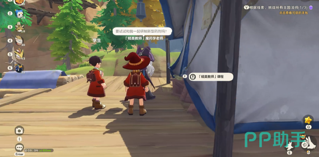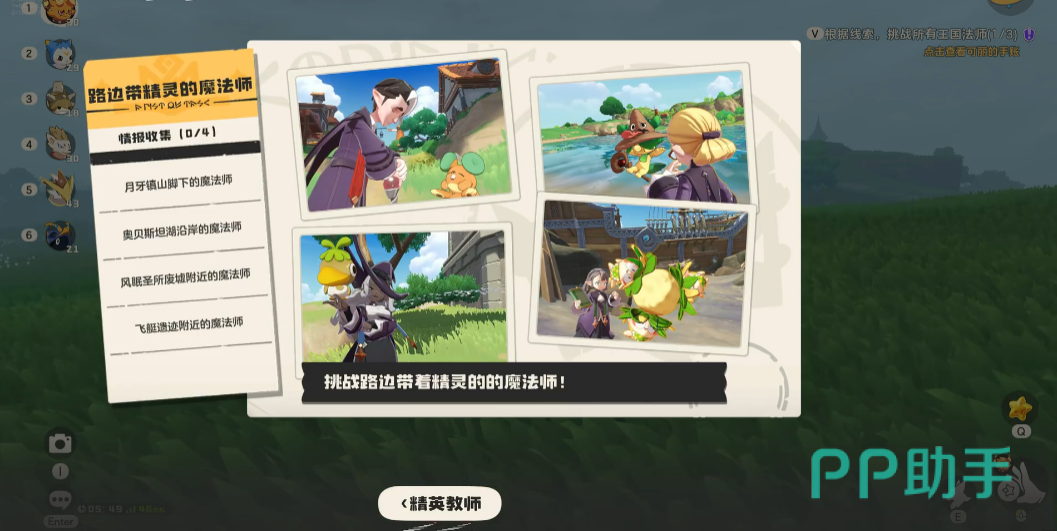 这个任务是在王国法师之谜支线的第三阶段,需要先将追随冒险家的学生任务,以及路边带精灵的魔法师任务完成,这是两个前置任务,接着和NPC可莉西亚对话,任务的提示会提示大家要去寻找三个精英教师,如果没有解锁这个任务,一定就是主线这方面月牙镇的探索章节是不是没达到进度要求。