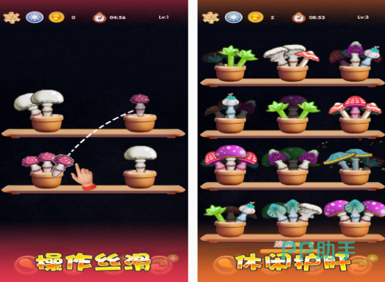 这款拥有着可爱蘑菇的经典休闲游戏,它属于玩法超级简单,又有趣的虚拟玩家。在规定时间内,通过不断合成蘑菇的方式,享受各种色彩的蘑菇样子。利用冷丝滑的操作方式,将不同类型的蘑菇,通过点击移动的方式,放置不同的花盆里,就能合成比较可爱的小蘑菇。由于不同颜色搭配起来所呈现出的样子,以及颜色不同,所以可带来非常不错的视觉盛宴。