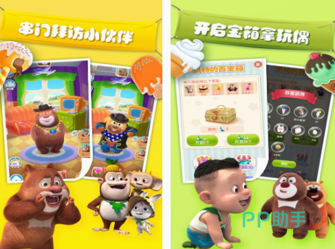 这款休闲趣味性的益智手游,既能看到采用q版的画面所设置的熊大熊二,也有非常小的光头强形象,并没有特别复杂的操作方式,也不会像动画片那样面临复杂的事情,而是需要领养熊大熊二,与他们共同的通过画画或者是饮食起居等方式,享受养成的乐趣。融入了经营农场以及拜访小伙伴等诸多的玩法,还有机会获得很多玩偶。
