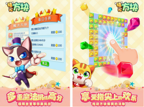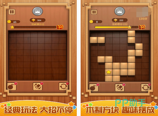 这款游戏除了通过控制木质方块,利用趣味摆放的方式进行消除,同时还有经典的玩法,你需要在每次挑战的时候,达到目标要求的分数以后,就可过关。在玩的时候,如果想要在排行榜当中获得更好的成绩,也需要在每次闯关的时候,获得更高的分数。需要玩家在玩的过程中,根据布局来实现方块的摆放,还能使用多样的道具辅助消除。