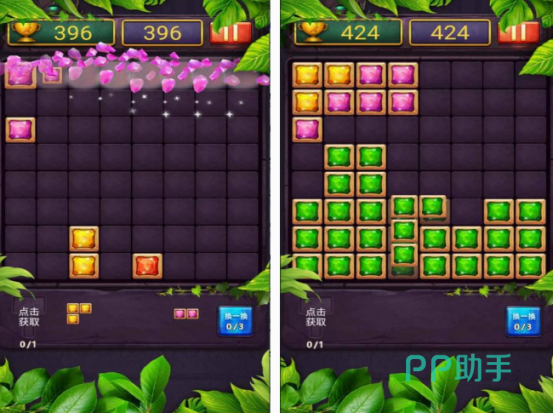 这款是以点击下方所出现的各种颜色的方块,通过拖动到合适的位置上以后,进行消除的,虽然在玩法上与俄罗斯方块有很多的相似之处,不过却并不是从屏幕下方不断的掉落方块,而是需要玩家根据整个游戏画面上的布局,拖动适合的方块,来完成消除。搭配上清新的音乐以后,让大家在玩的时候放松身心,并没有太复杂的操作。