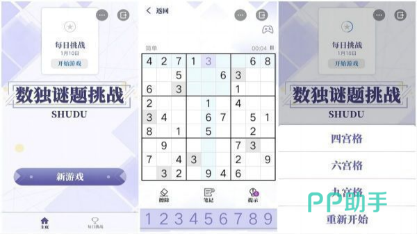 针对小学阶段的小朋友,以有趣的数学益智游戏数独展开娱乐,不仅可以快乐玩耍,同时也能展开思维逻辑的锻炼。《数独谜题挑战》内为大家提供了纯粹有趣的数独游戏娱乐,简单清爽的页面令大家备好松弛。同时在娱乐模式上,通过填充数字不重复的原理,大家可以进行数独宫格数字填空的推理,针对大家的实际情况,游戏内还设有不同难度的挑战模式。