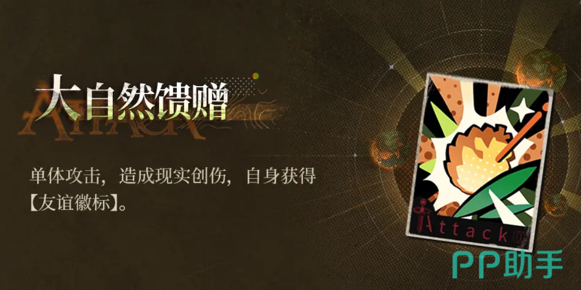 在游戏中嚼嚼松果总共有三个技能,首个技能是“大自然的馈赠”,它可以对敌方的单体目标,造成一次现实的创伤,并且让自己获得友谊徽标的效果,强化下一次的技能伤害。